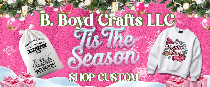 At B. Boyd Crafts, we believe every occasion deserves a personal touch. Whether you're celebrating a big milestone or creating everyday moments that matter, we specialize in custom gifts, apparel, and keepsakes that make people feel seen, loved, and celebrated. From party favors and t-shirts to tumblers and heartfelt holiday bundles, every item is crafted with care, creativity, and intention.