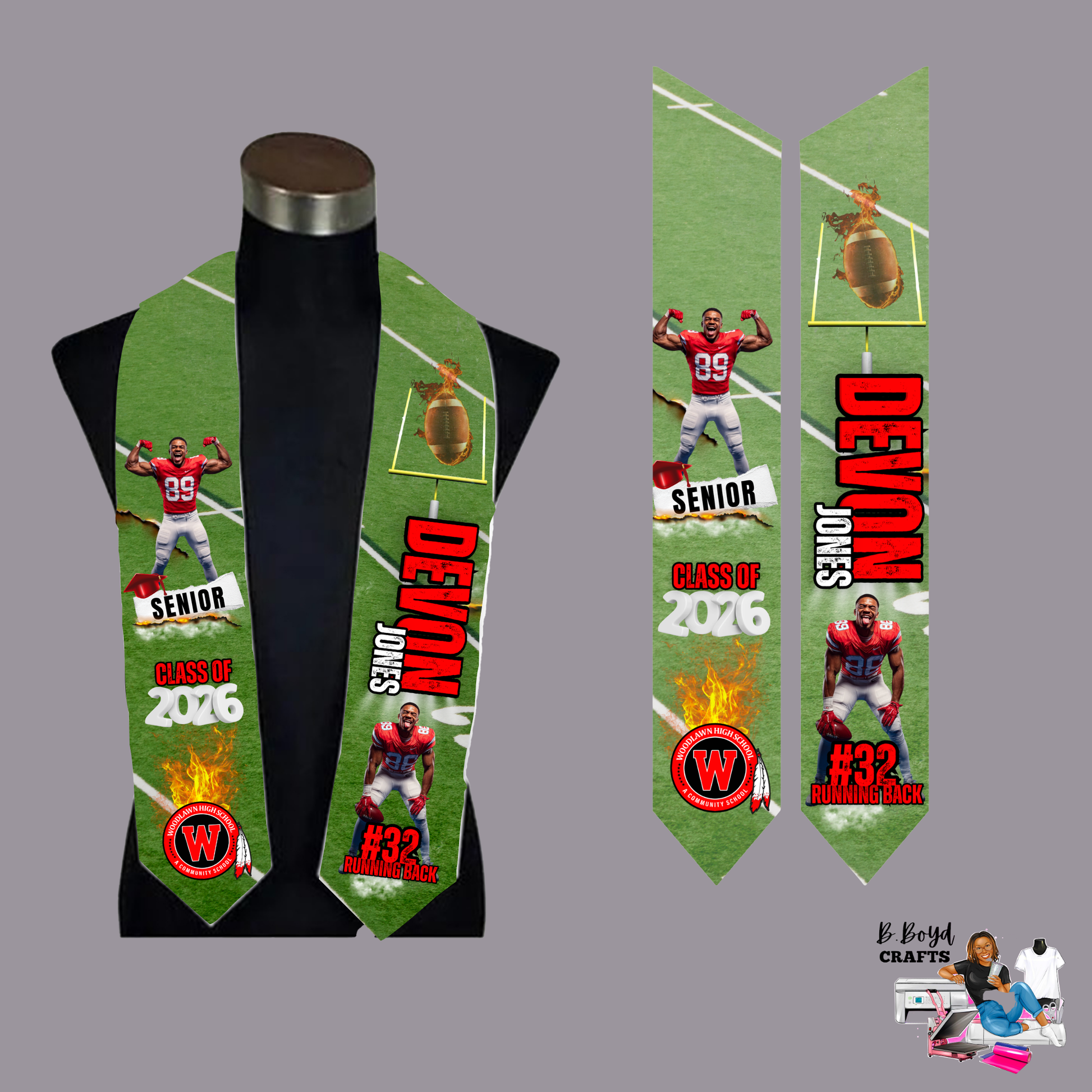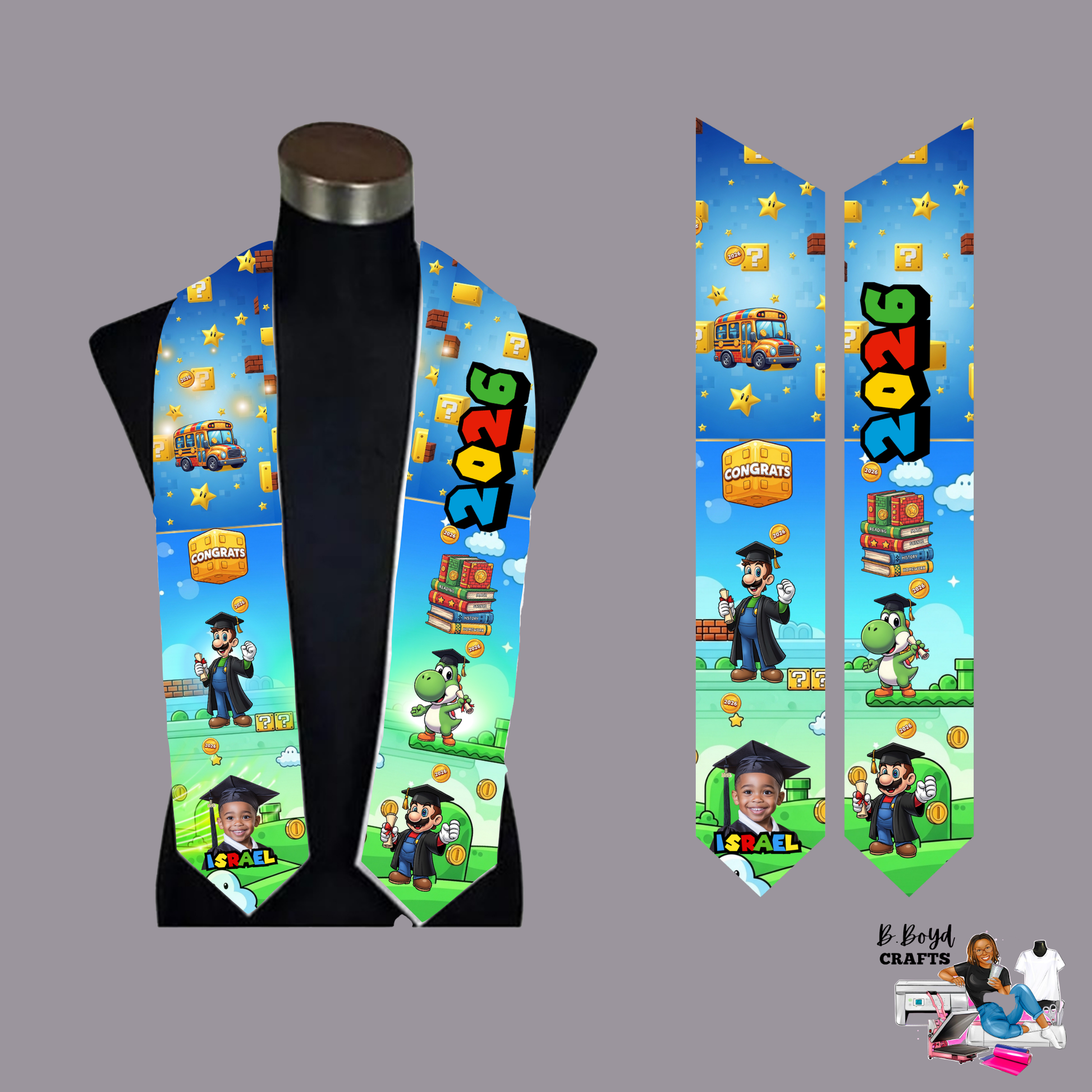 Make your graduation day unforgettable with our beautifully crafted custom graduation stole. Designed to showcase your unique journey, this flat design stole adds a personal touch to your cap and gown ensemble.